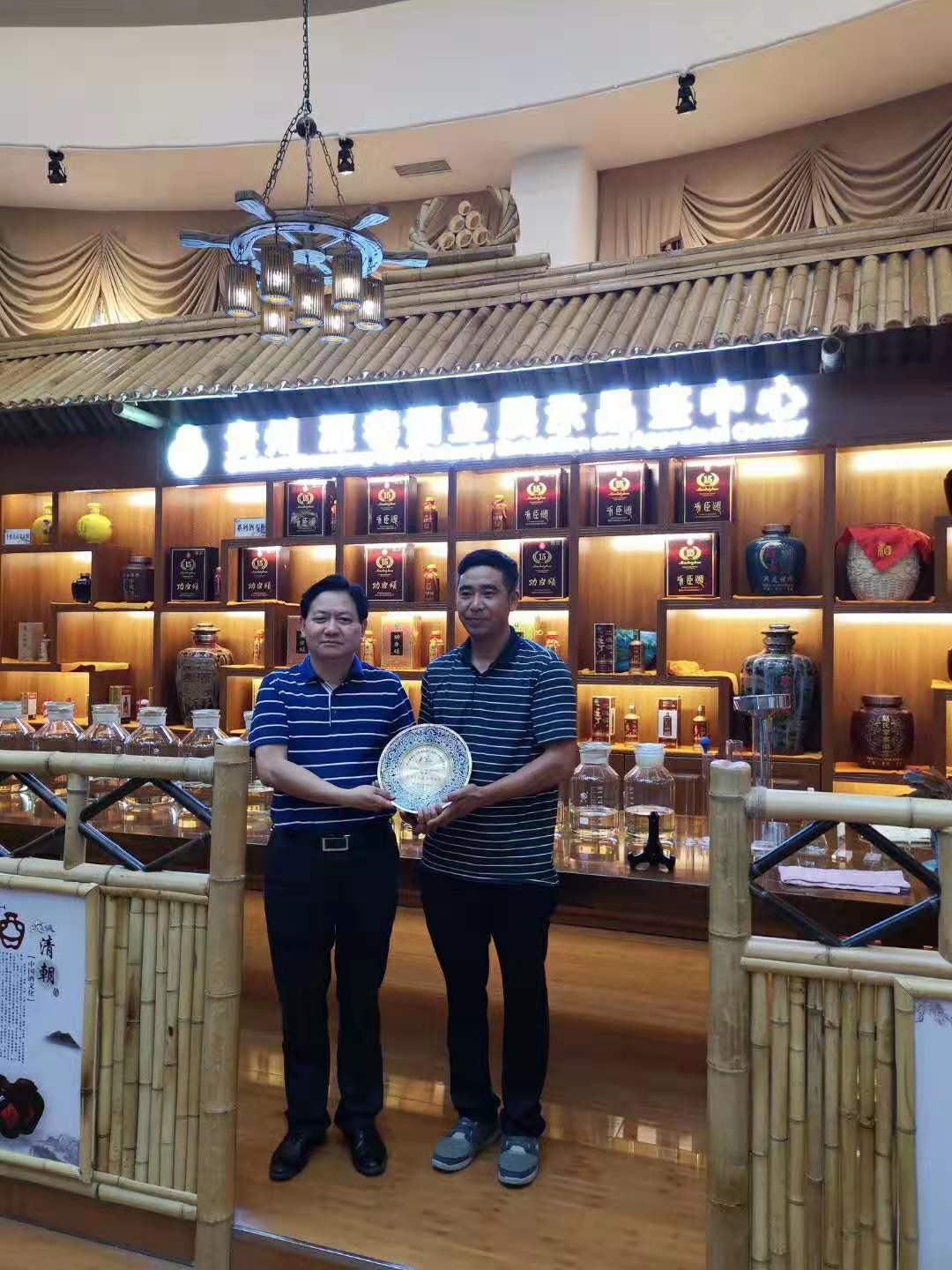 贵州深巷酒业荣获黔川渝金三角旅游联盟大会优秀文化旅游商品奖。图为播州区统战部长陈炜给总经理徐思军颁奖。